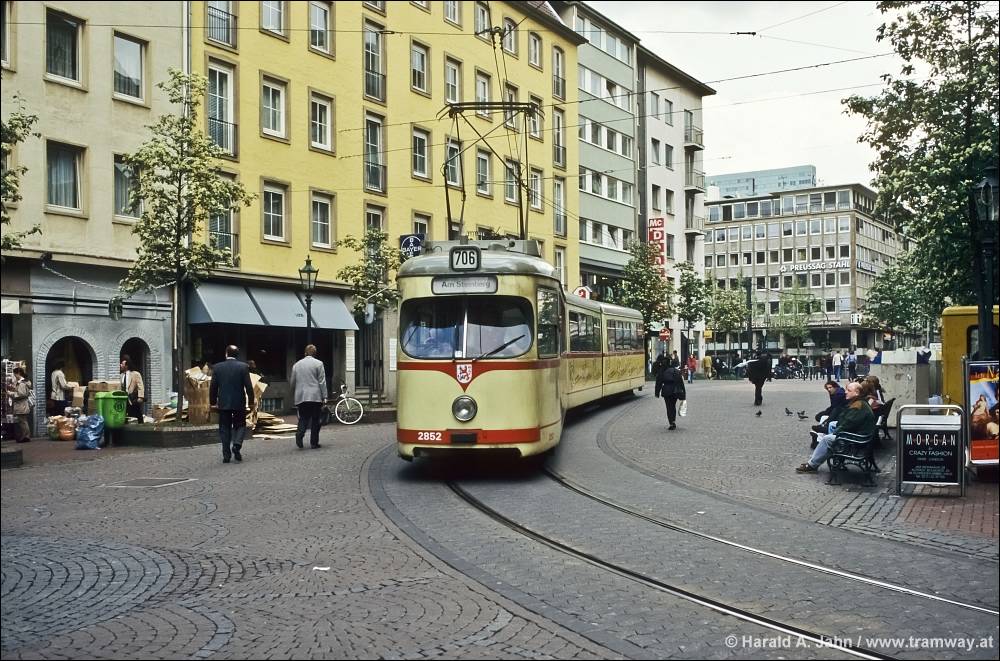 1997-05-0x, °706 Hunsrückenstrasse, GT8 2852; die Strecke durch die Innenstadt wurde durch die unterirdische