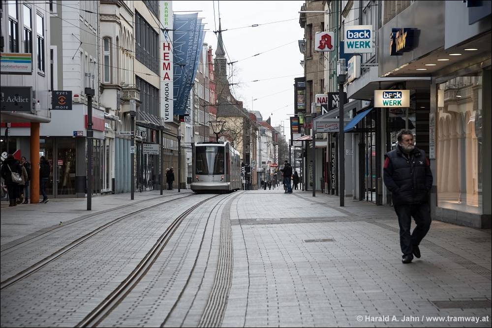 2016-03-28, die Strecke der Linie 709 in Neuss war von der Einstellung bedroht, als Kompromiss wurde sie auf ein Gleis reduziert - Wagen 2004