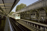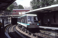 die Flotte der Gummiradler verstärkte. Die beiden Bilder sind auf vergleichbaren Strecken aufgenommen: oben eine der oberirdischen Stationen der Linie 2, unten eine ähnliche Situation auf Linie 6. Diese beiden Linien bilden den nördlichen bzw südlichen Teil der großen Ringlinie, die zusammen mit der Linie 1 als erste Keimzelle des Metronetzes gebaut wurden.