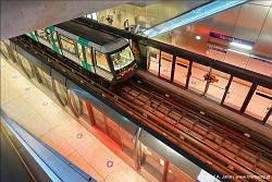 Der fahrerlose Betrieb hat vor allem den Vorteil, dass auch in Schwachlastzeiten gute Intervalle angeboten werden können. Personal fährt gelegentlich aus Sicherheitsgründen mit bzw. ist in den Stationen präsent - sicher die bessere Lösung, als die Mitarbeiter in kleinen Fahrerkabinen den Zug steuern zu lassen.